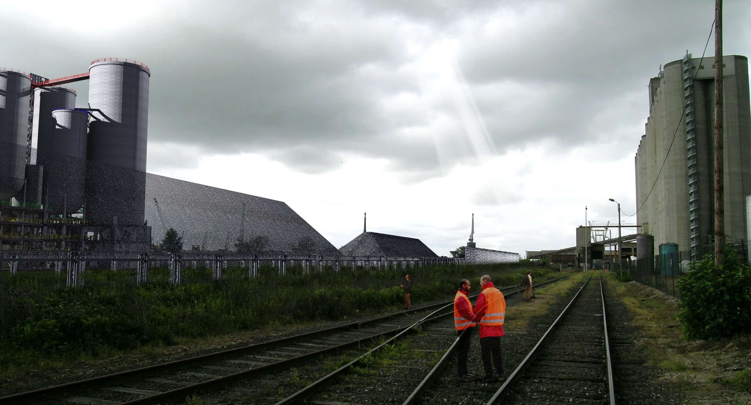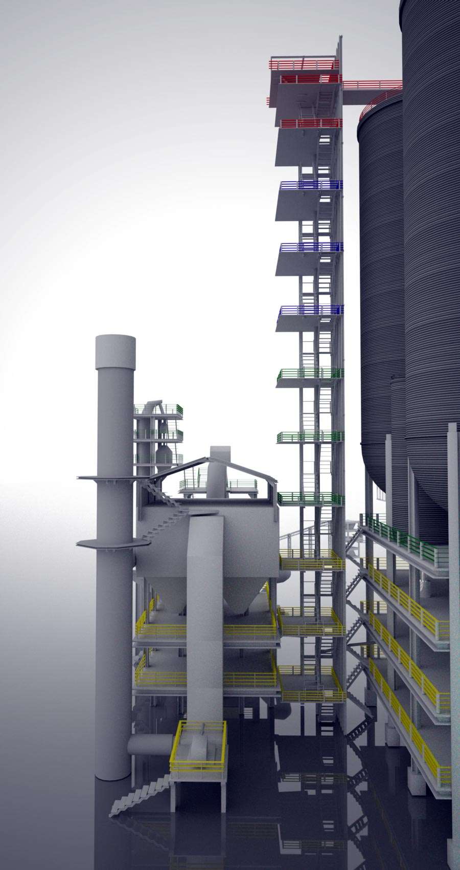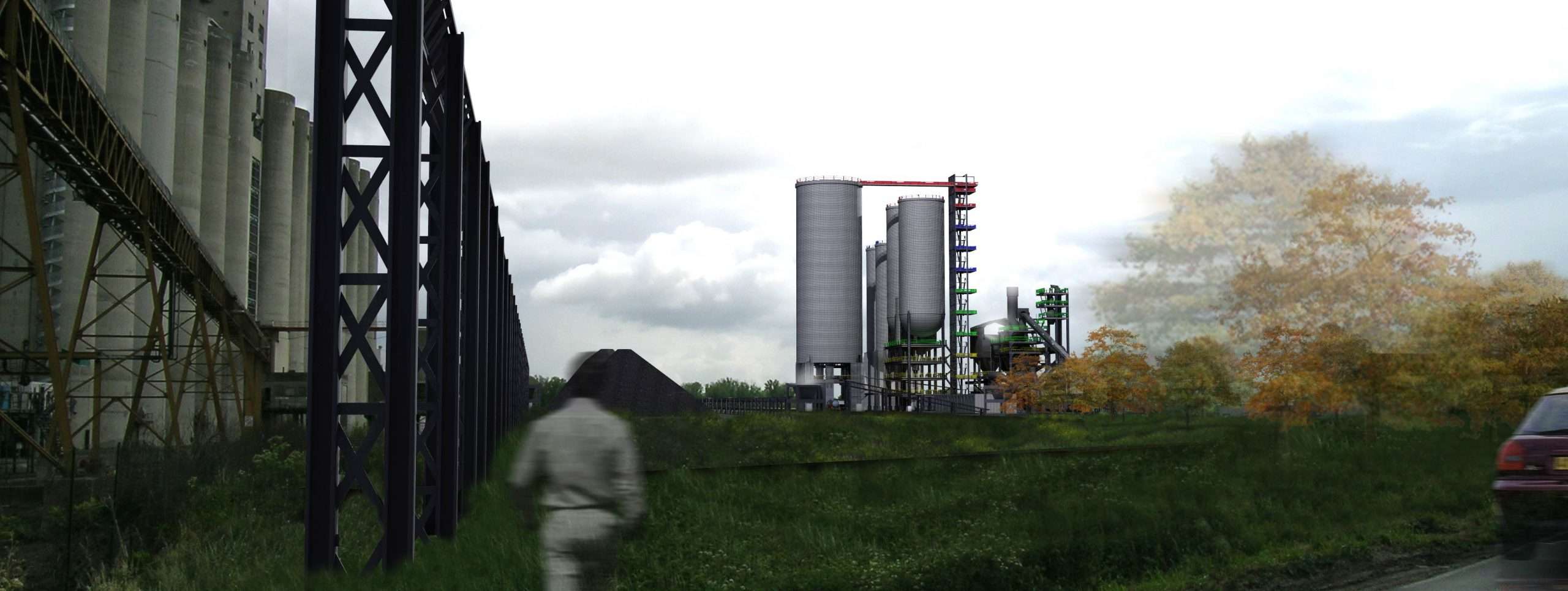 Objectif : faire en sorte que les éléments existants et les implantations nouvelles deviennent complémentaires. Les unités de stockage et la tour de concassage constituent la façade sur le fleuve et composent le "signal". les unités de conditionnement et d'expédition "ferment" la composition
