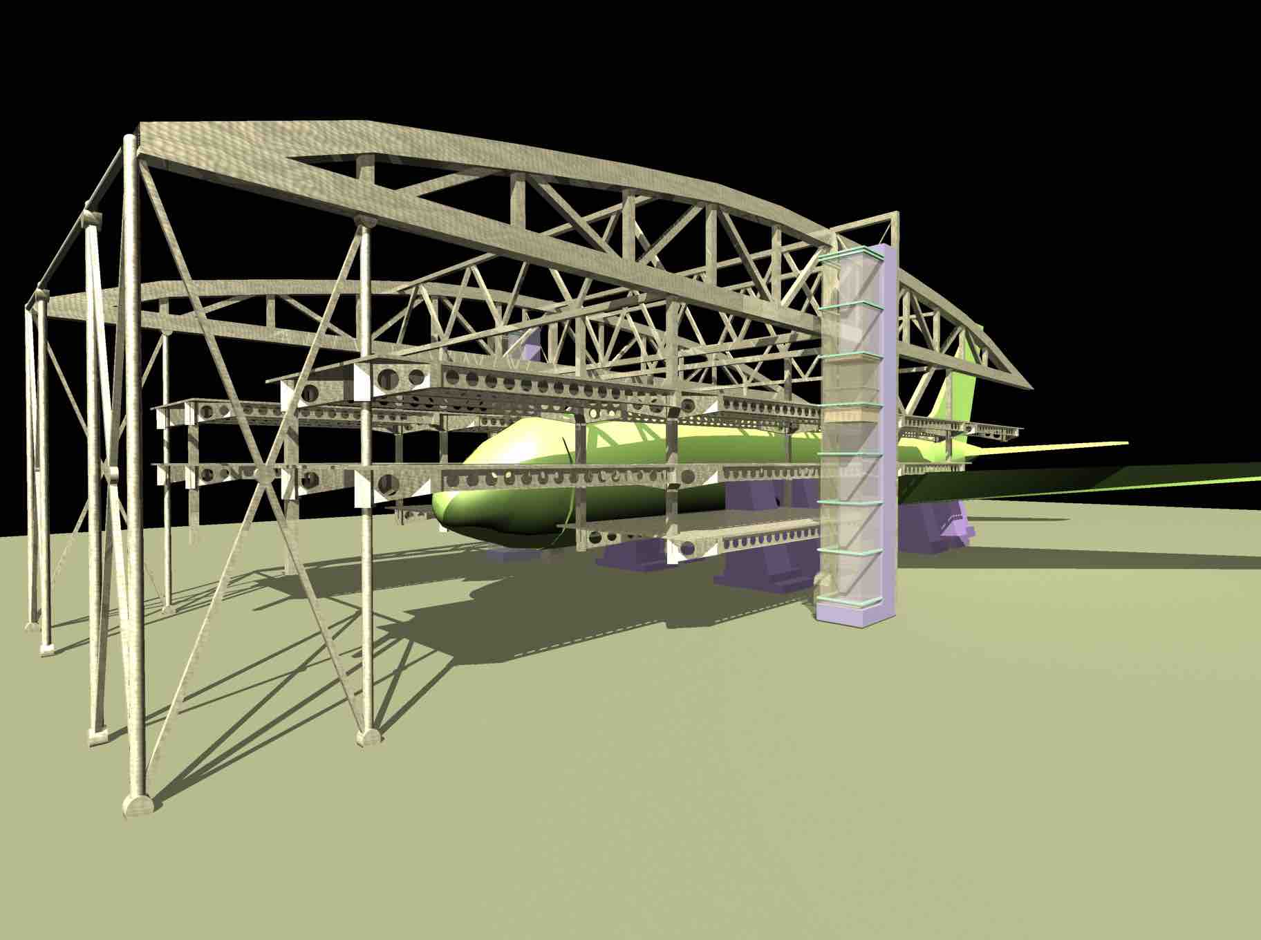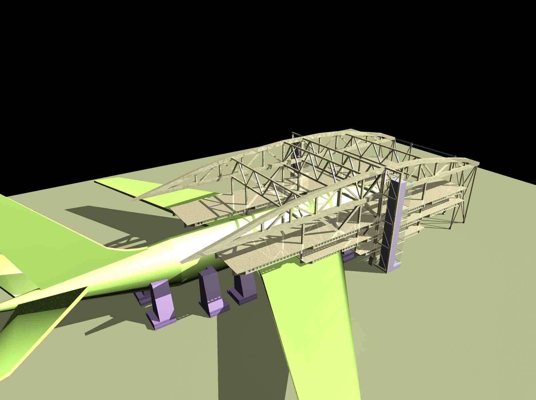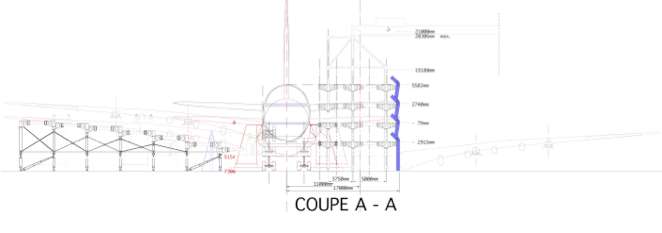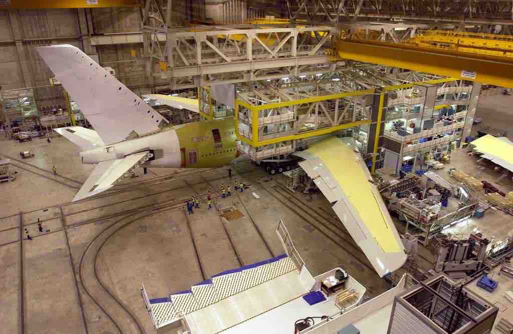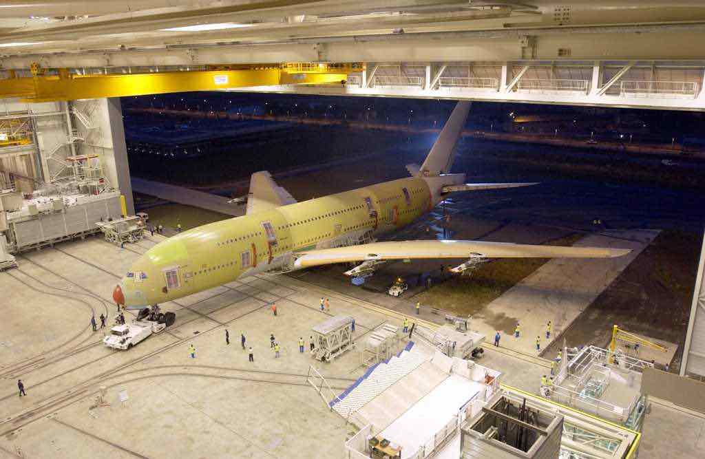 Les impératifs liés à la sortie de l'avion assemblé (démoulage) impliquent que la partie arrière des outillages soit en porte à faux le temps de l'opération en supportant le poids des structures, planchers et équipements permanents